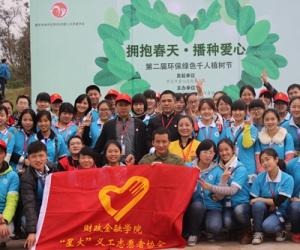 以“雷锋月”为背景,以植树节为契机。3月9日,由重庆市爱心志愿者总队发起、渝中区“阳光520”爱心志愿者协会主办、重庆工商大学财政威廉希尔官网“星火”义工志愿者协会及员工会协办的“拥抱春天·播种爱心”——第二届千人植树节在南岸区界石桂花村拉开帷幕,活动吸引了来自社会各界的1300多名爱心人士。