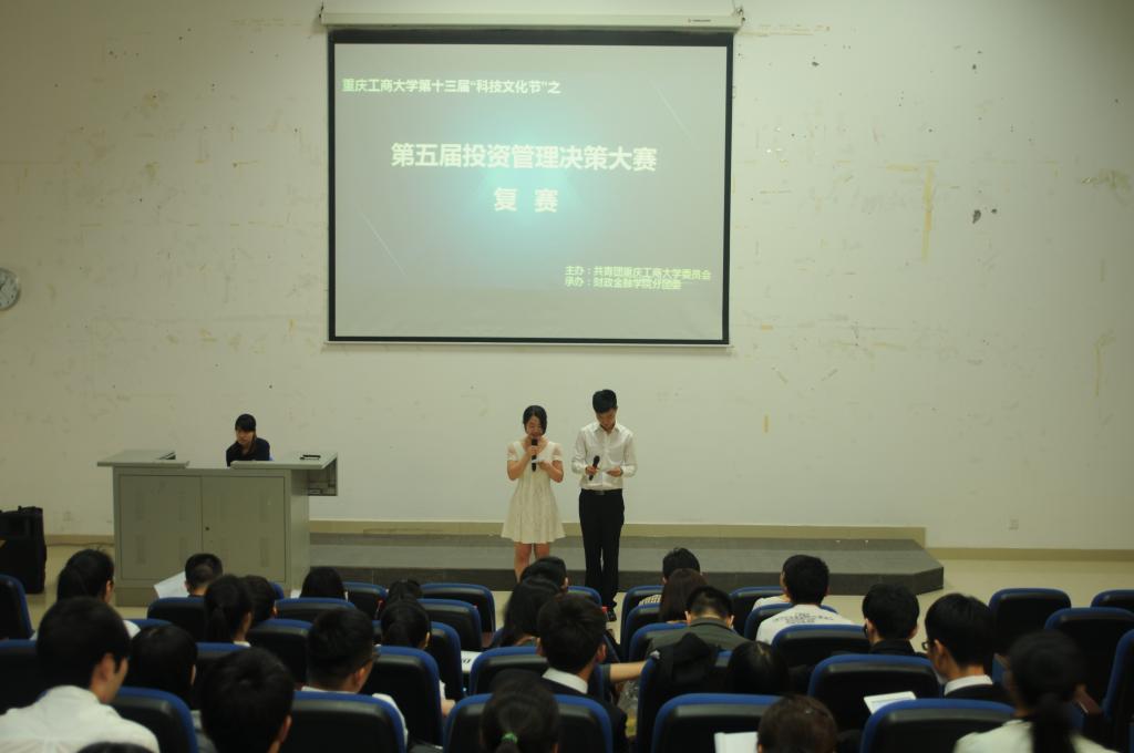 下午,由重庆工商大学举办,财政威廉希尔官网承办的第五届投资管理决策大赛复赛在田家炳209室举行。来自财政威廉希尔官网投资系的陈晓莉、周渊老师,金融系的徐阔老师,以及财政威廉希尔官网分团委书记兰丽娟老师出席了本次比赛。