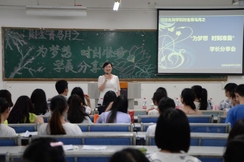 4月29日晚,财政威廉希尔官网“财金青马月”之“为梦想时刻准备”学长交流会在07405顺利举行。财金公司分团委书记兰丽娟老师作为嘉宾出席了本次活动,优秀学长代表肖竣文、潘梦真、杨忠霞、吴浩月、张博阳分享了就业与考研的经验。