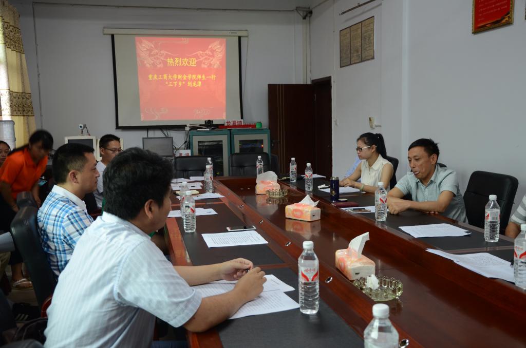 为了深入学习宣传贯彻党的第十八届五中全会精神以及习近平总书记关于青年成长成才的一系列重要论述,实现党的“十三五”规划和“四个全面”战略布局,实现中华民族伟大复兴的中国梦。重庆工商大学财政威廉希尔官网积极响应校团委的号召,组成农村电商服务团, 于7月19日上午,在乡长殷志勇的带领下,走进龙潭镇现代农业园和电商土乡货网上村庄服务站,与相关企业负责人进行了深入的交流。