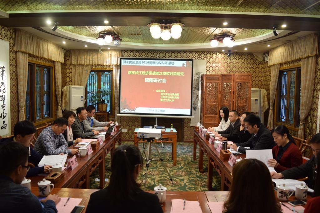 2016年10月28日上午,《落实长江经济带战略之税收对策研究》课题研讨会在公司南山书院成功召开。参加本次研讨会的有重庆市地税局政策法规处田野处长、云南省地税局调研室杜一峰主任、云阳县地方税务局安然局长、重庆市地税局政策法规处吴梅副处长、重庆工商大学财政威廉希尔官网课题组成员等20余人。