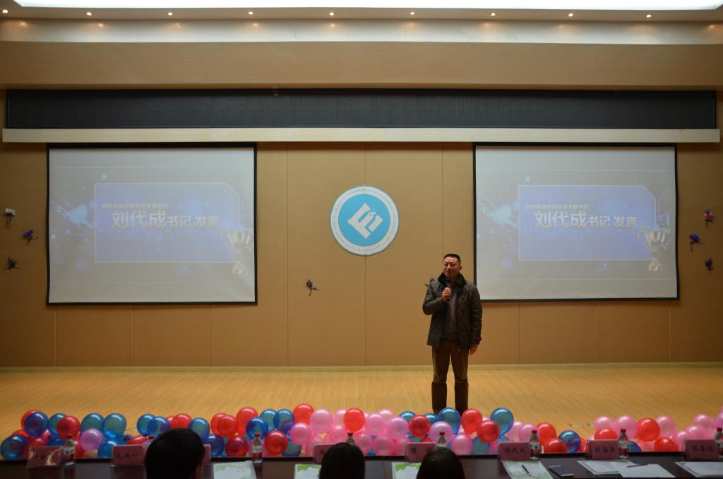 总结暨表彰大会的最后,刘代成书记上台发表讲话,赞许了选手们在赛事中的付出与对成功的不懈追求,表达了他对同学们的祝福以及对为学子们提供实践机会的感谢。