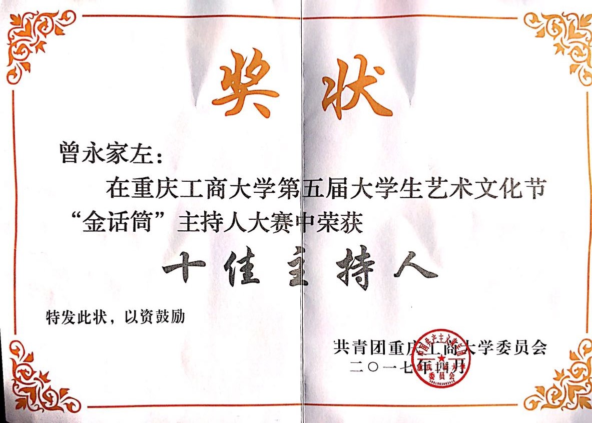 雏凤清于老凤声,在金话筒主持人大赛中,公司参赛选手经过初赛、复赛层层选拔进入决赛,让评委和观众领略到了财金公司学子的风采。经过四个环节的激烈角逐,公司曾永家左同学取得了第六名的好成绩,荣获“金话筒”主持人大赛“十佳主持人”称号。