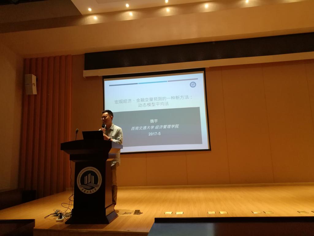 为提高同学们论文写作水平、科研水平,突破传统研究方法和模型的束缚和缺陷,帮助同学们在实际研究中解决难题,寻找更方便的研究工具。财政威廉希尔官网于2017年5月25日下午7:00在田家炳书院50209举办了由魏宇教授主讲的“宏观经济、金融变量预测的一种新方法——动态模型平均法”的讲座。本次讲座由财政威廉希尔官网副经理曾胜教授主持,参与本次讲座的不仅有本科生和研究生,以及公司的老师。