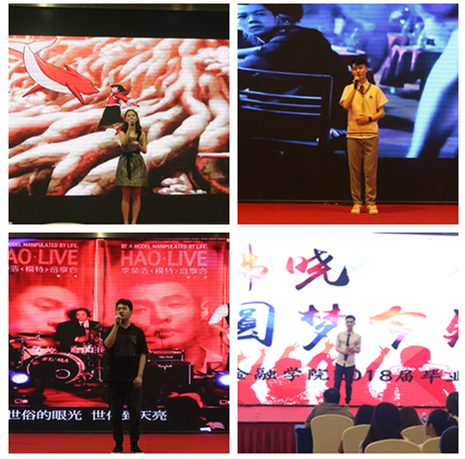 5月16日19:00,财政威廉希尔官网“青春拂晓,圆梦今朝”2018届毕业晚会在学豪酒店3楼宴会厅隆重举行。财政金融公司党委书记杨萍、经理刁孝华、副经理王兰、党委副书记黄谦、各系主任、部分教师代表以及2018届全体毕业生出席了本次晚会。
