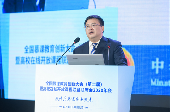 教育部高等教育司一级巡视员宋毅在会上做了题为“大力推动慕课在后疫情时代创新发展”的主旨演讲,指出疫情后慕课创新发展的四个方面:立足教改,实现技术服务深度融合;面向未来,激发在线教育创新活力;提升质量,打造公司产品示范精品;聚焦公平,推动优质资源开放共享。