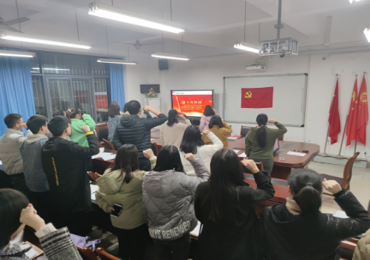 党支部书记张燕首先向大家介绍了组织生活会的流程以及生活会过程中需要注意的事项。首先是关于预备党员的发展,从各位预备党员的发言中可以看出他们的入党动机和入党的决心。接着学习了习近平总书记的讲话并进行了集中讨论,包括对经济发展相关问题的总结分享,学习和分享了十九届五中全会精神的学习体会。全体党员过“政治生日”,全体起立,紧握右拳,由唐程伟同学带领大家用铿锵有力的声音重温入党誓词,大家充满激情、心潮澎湃。最后开展了志愿者服务活动,支部部分党员代表对田家炳办公楼的树叶进行了清扫,增强大家的劳动观念和服务意识。