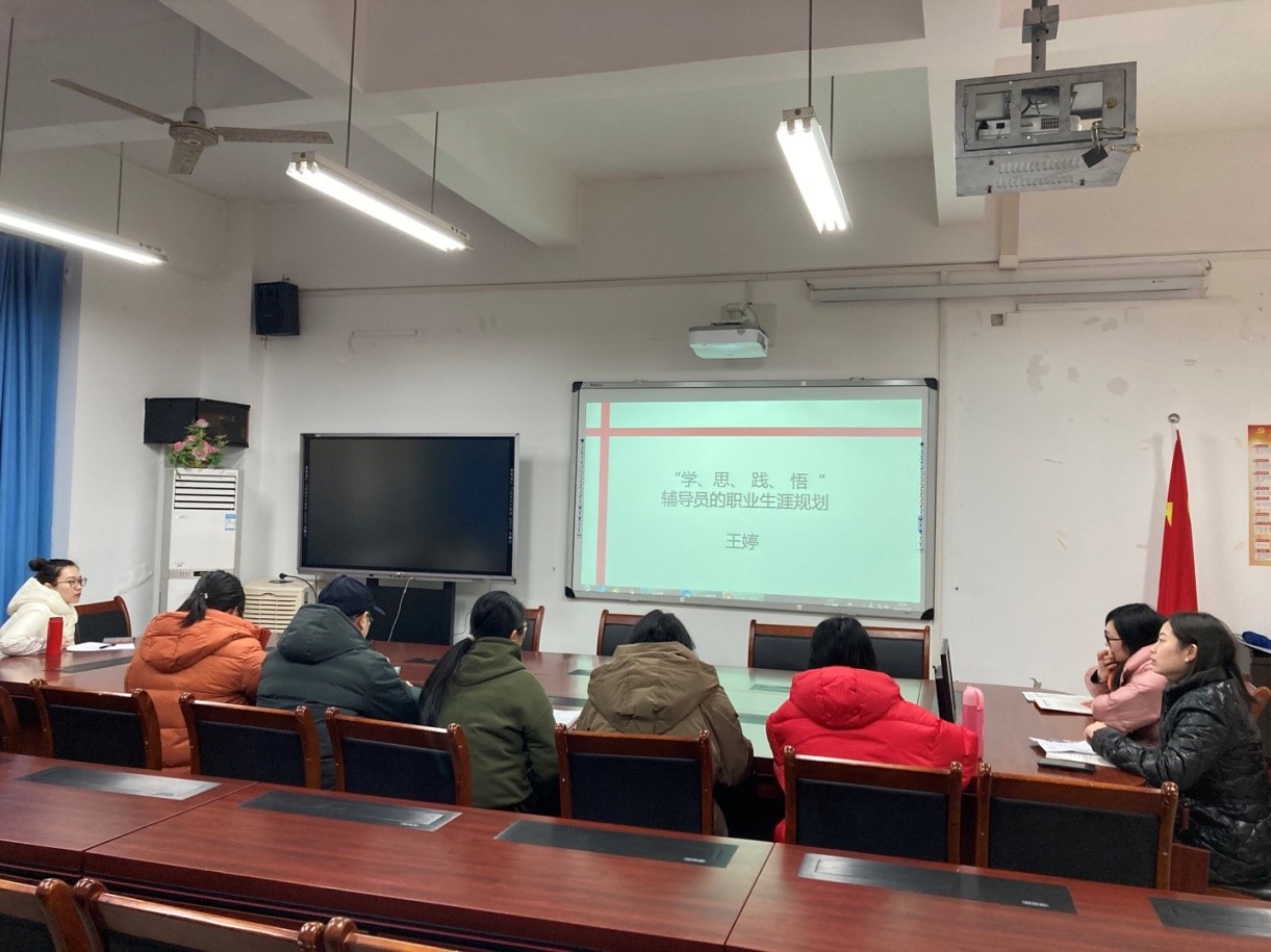 余新副书记从工作特色亮点、存在的问题及2021年工作计划三个方面进行总结,回顾了2020年员工工作取得的成绩,指明了2021年员工工作努力的方向,激励学工队伍继续坚持立德树人,不断开拓进取。高校辅导员年度人物、全国优秀教师王婷老师以《“学、思、践、悟”辅导员的职业生涯规划》为题进行分享,内容涵盖新时代高校辅导员核心素养提升六个着力点、高校辅导员制度及队伍建设、新时代辅导员“三知”、辅导员的专业化职业化发展等,讲解过程理论与案例相结合,具体生动又启迪思考。随后,大家围绕如何做好科研、如何打造特色工作及如何组建发展团队等进行了热烈地讨论和深入地交流。