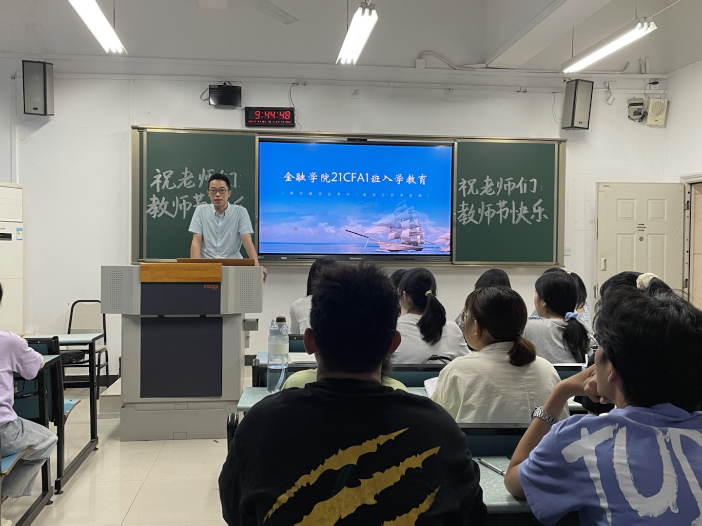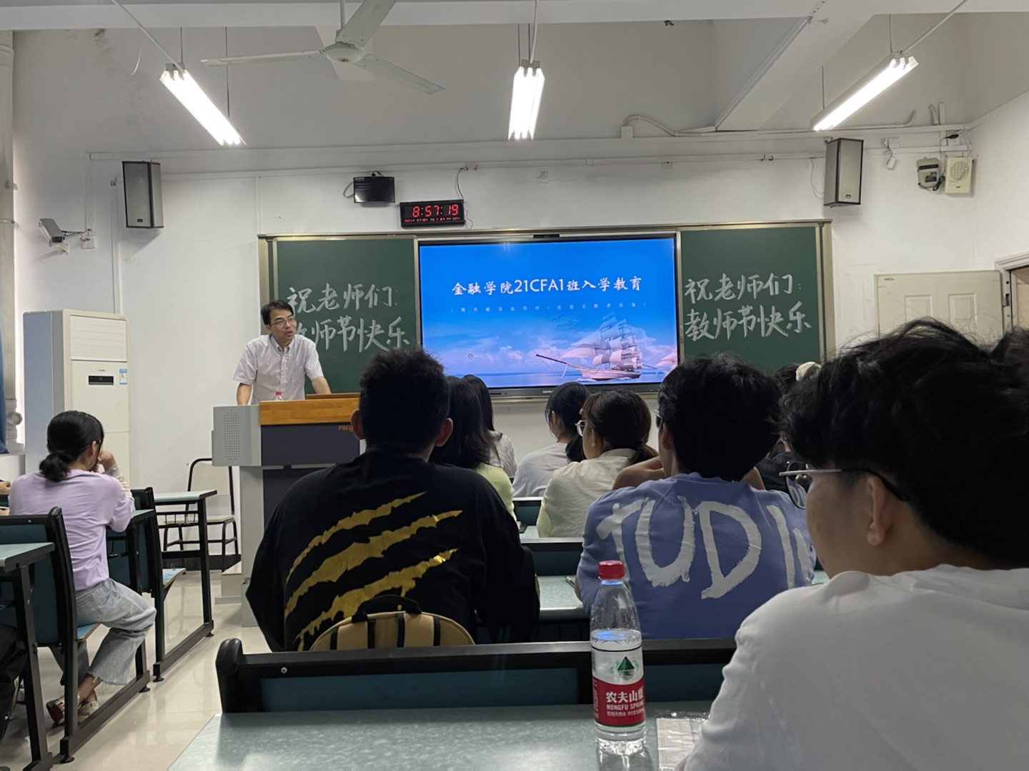 为引导大一新生合理做好大学学习生活规划,加强专业认识,更好地适应老员工活,9月10日上午9点,威廉希尔官网副经理庞楷教授、投资系系主任魏琪副教授于兰花湖校区广智楼20208教室开展了21CFA1班新生入学教育。入学教育由辅导员兰丽娟老师主持。