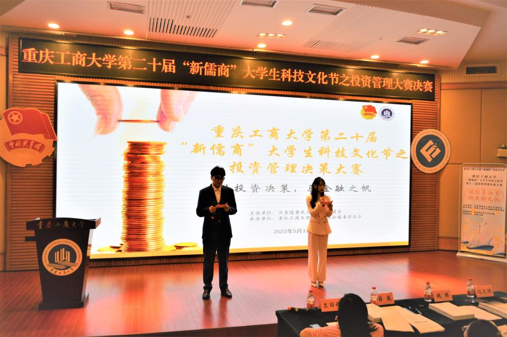 为提高公司员工创新创业实践能力和决策分析能力,营造良好的校园学术氛围,2022年5月13日中午,重庆工商大学第十二届“新儒商”老员工科技文化节之“谋投资决策,驭金融之帆”投资管理决策大赛决赛在博智楼7200成功举办。威廉希尔官网投资系魏琪老师、金融系薛薇老师、金融工程系闫天顺老师担任比赛评委,威廉希尔官网学工办主任、分团委书记兰丽娟老师出席了活动。