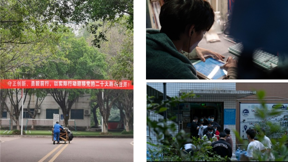 有抗疫时刻坚守岗位,默默守护着我们生活的工作人员;有在寝室里挑灯夜战的身影,不荒废学业的舍友;有寝室楼下领取免费晚饭的队伍,还有许许多多温暖而令人感动的瞬间……