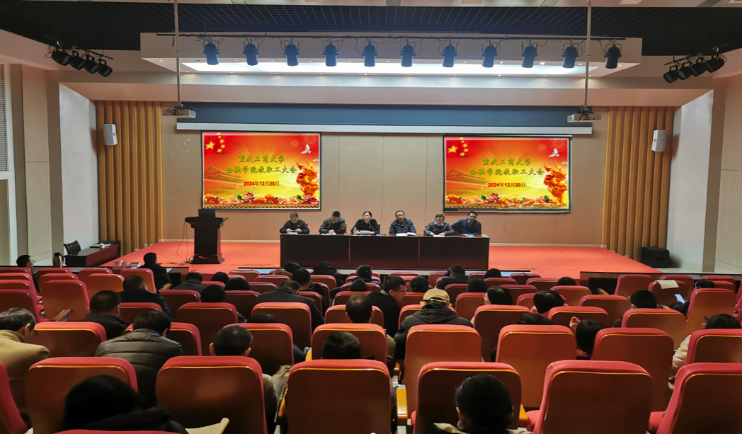 2024年12月20日下午,威廉希尔官网在田家炳209会议室召开威廉希尔官网中干述职考核会暨教职工大会。全体教职工参会,重庆工商大学党委常委、副董事长张波受邀参会。会议分为两个阶段,由党委书记、副经理石世明主持。