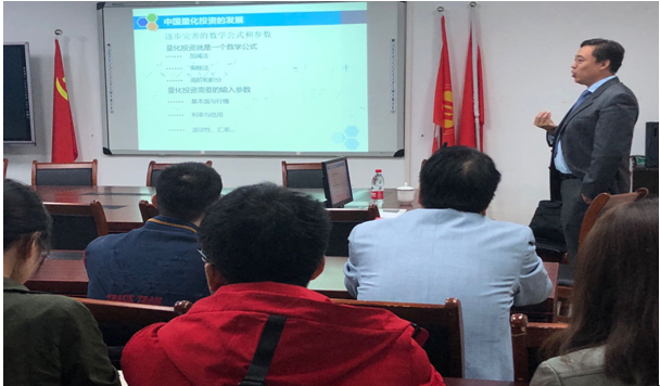 会议由刁经理主持,首先介绍了公司智能金融的建设情况,随后展望公司未来的云实验室建设,表达了对林建武教授一行的热烈欢迎。随后,林建武教授强调要站着交流,能以更加饱满的情绪和大家分享。林建武教授在华尔街高盛等顶级金融机构全球投资部门实战工作多年,掌握世界前沿动态。他用深入浅出的方式,让老师和同学们受益匪浅。