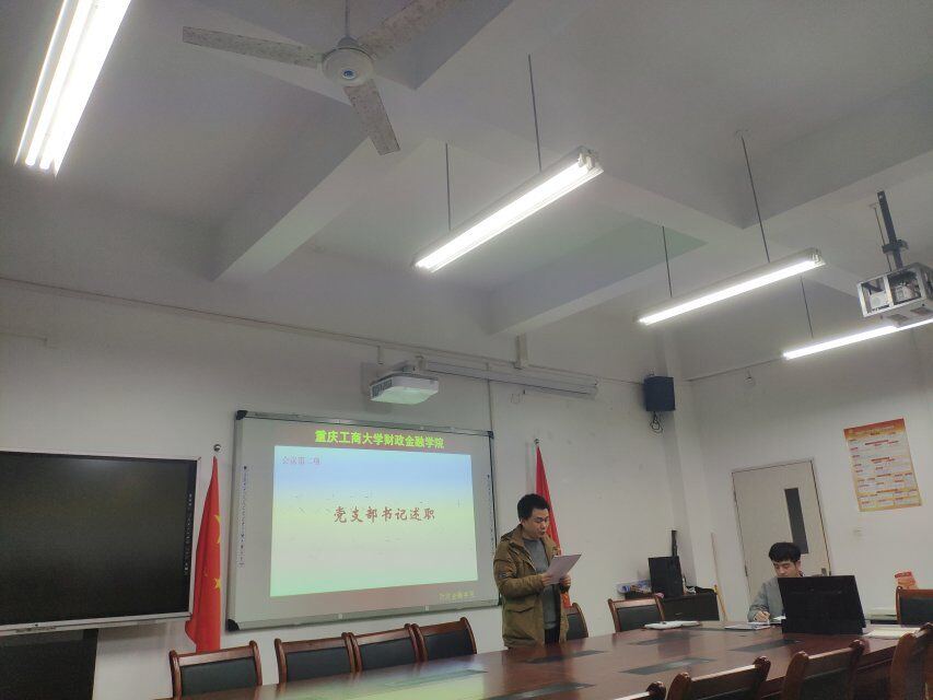 2018年12月13日下午5点40,重庆工商大学财政威廉希尔官网分党委员工第一党支部在田家炳306召开了12月的第一次支部大会,会议由林秋梦同志主持,员工第一党支部书记文理列席会议。本次会议的主要内容有:1.学习习近平主席在全国教育大会、生态保护大会以及全国宣传思想工作会议上的重要讲话;学习习近平主席给中央美术公司老教授的重要回信;2.学习以黄群、宋月才、蒋开斌同志为代表的抗灾英雄群体和王继才同志的先进事迹;3.观看《“五毒俱全”破法纪,歧途末日终自毁》警示教育片;4.党支部书记文理进行述职报告及党员民主评议。