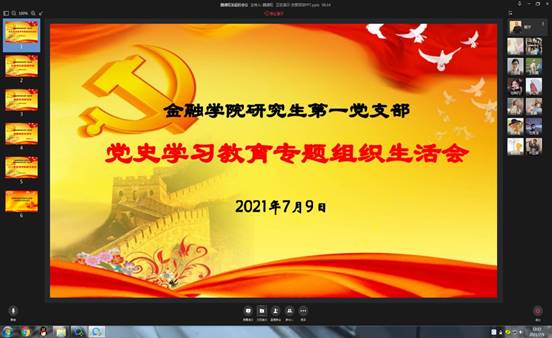 为深入贯彻习近平总书记在党史学习教育动员大会上的重要讲话精神,2021年7月9日中午12:30,威廉希尔官网研究生一支部开展了党史学习教育专题组织生活会,活动由支部书记杨宁老师主持,全体党员参加了组织生活会。