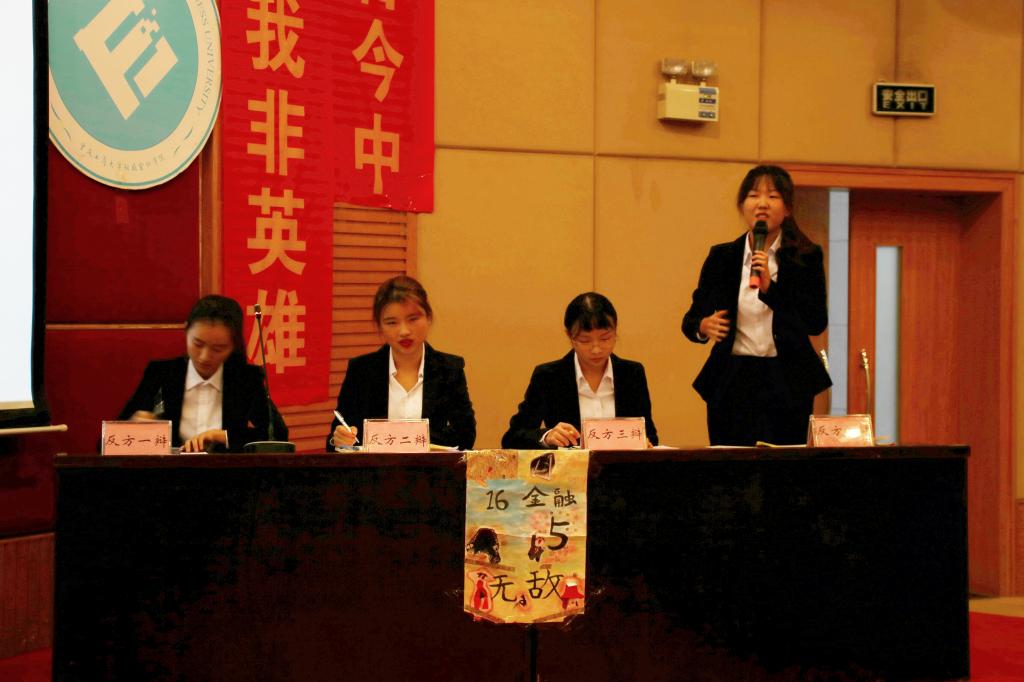 赛后评委离席打分,这时财金公司院辩论队也为现场观众带来了一场高质量的表演赛。最终,由主持人宣布,来自16金融二班的正方辩论队获得优胜,16金融五班的四辩杨新畅同学被评为最佳辩手。随着最后一场比赛的结束,第十六届“财金杯”辩论赛也圆满落幕。