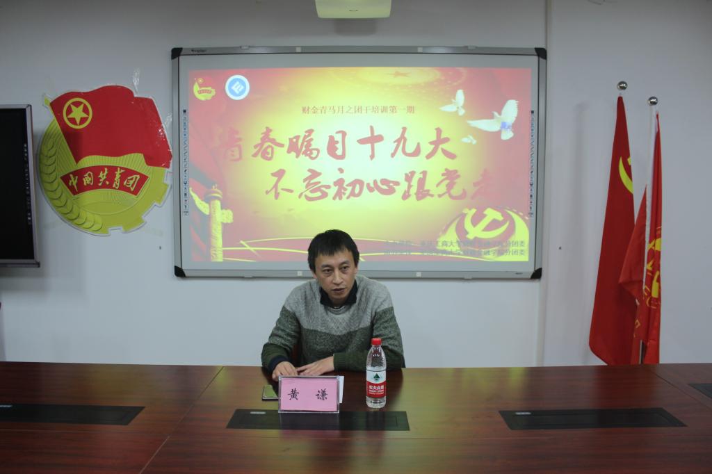 本次培训以“ 青春瞩目十九大,不忘初心跟党走”为主题,黄谦书记根据自己的心得体会为大家讲解和指导了新时代下我们该如何去认识中国的发展等问题。从西方对中国的认知,到中国特色社会主义的建设发展;中国共产党从革命党成为新中国下的建设党、执政党;社会主义初级阶段的基本矛盾在十九大的转变,对党在新时代下的要求也逐渐转变。我们身处在新时代下,需要认清社会主义的基本矛盾,需要加强党的全面领导,为人民服务,也受人民监督。在团干方面,黄谦书记说道,财金学子的需求分为个人和集体两个维度,集体需要每个人共同凝聚,而作为团干,需要知道自己肩负的责任,该干什么,能够为大家做什么至关重要。