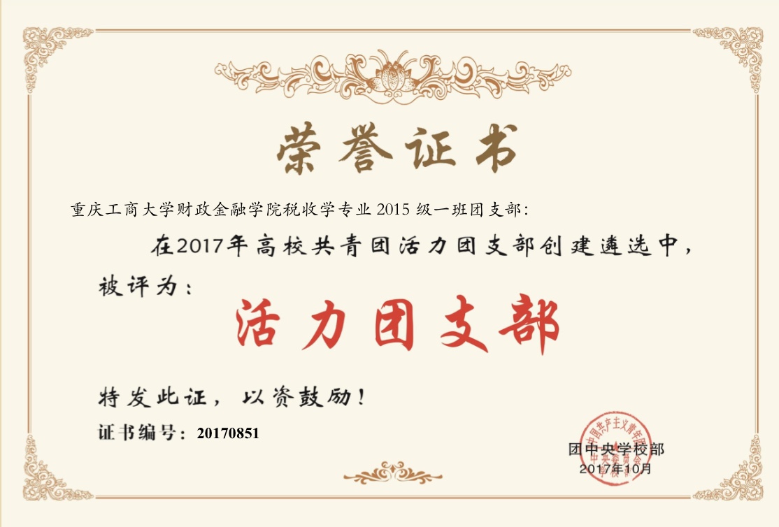 近日,团中央公布2017年全国高校“活力团支部”评选结果,经校内创建、市级遴选、网络投票、全国评审及结果公示等环节,共有1192个团支部进入了全国遴选环节,公司税收学专业2015级一班团支部从全国1192个团支部中脱颖而出,喜获2017年全国高校“活力团支部”荣誉称号。