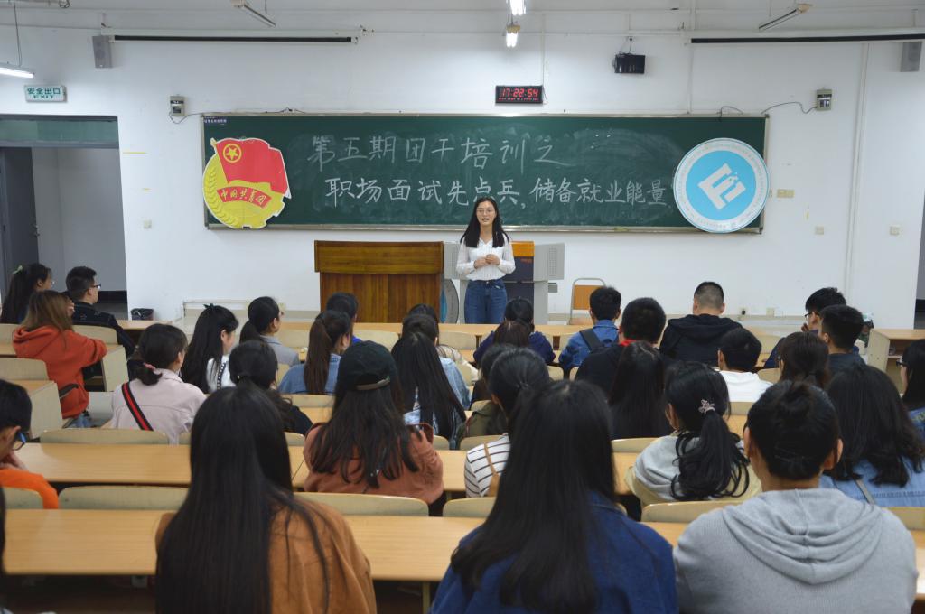 此次团干培训以“职场面试先点兵,储备就业能量”为主题,以提升同学们的就业知识储备为出发点,以同辈帮扶为出发点,邀请了在假期进行了实习的同学,从不同的角度,为大家分享了关于面试、实习和自我准备等就业相关的经历。活动现场,来自财金公司的陈露等不同专业的三位同学依次为大家讲述了他们的面试和实习经历,并分享了自己的经验成果。他们以自我经历为依据,从简历制作的细节把控、面试现场的应对小技巧,到自己对银行实习过程的领悟,他们都一一为大家讲述。“不管你实习做的事情是大是小,它们总会在不经意间体现出作用”,陈露同学向大家说道。不管是客观细节,还是对自我的调节,他们的分享都让现场的同学们了解了更多,收获了一定的经验。