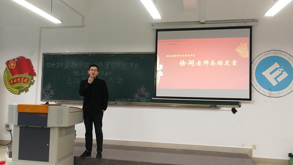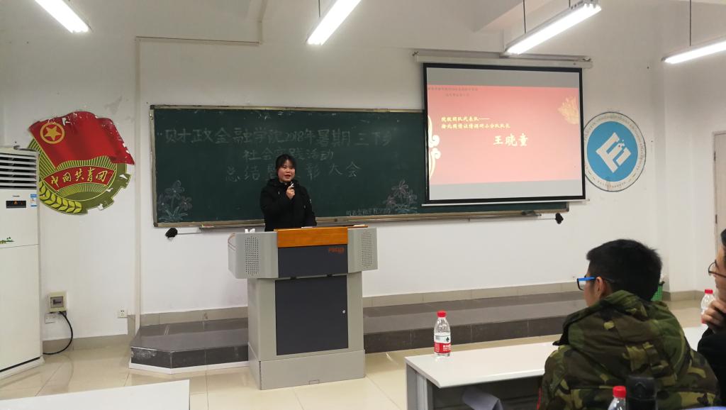 首先,徐阔老师上台对社会实践活动进行总结发言,对各实践分队给予了充分肯定和高度赞扬的同时,还提出两点希望:他希望社会实践要继续以宣传贯彻习近平新时代中国特色社会主义思想为主线,推动党的十九大精神进农村、进社区、进企业;他希望坚持社会实践主题要扩展到社会的方方面面,调动员工学习技能和本领的积极性,奠定坚实的工作基础,为实现伟大复兴的中国梦贡献青春力量。随后,财政威廉希尔官网分团委员工会主席林哲苏同学上台分别从四个方面汇报了2018年公司社会实践总体情况,他还向大家展示了此次实践活动的荣誉并总结活动中的不足。 紧接着,来自九龙坡“暑期嘉年华”支教小分队负责人高明同学以及院级代表队——渝北国情社情调研小分队队长王晓童同学对暑期社会实践进行了分享交流,他们在老师的指导下,走进九龙坡区金凤镇支教、进入基层探访调研、深入乡村寻求问题,使员工们感受到了改革开放40年来祖国繁荣昌盛,更加坚定理想信念,争做新时代先锋。最后,财政威廉希尔官网分团委书记徐阔老师、财政威廉希尔官网分团委(员工)副书记书记陈露同学分别为受表彰员工代表颁发荣誉证书,激励同学们弘扬社会实践精神,传承财金良好风尚。