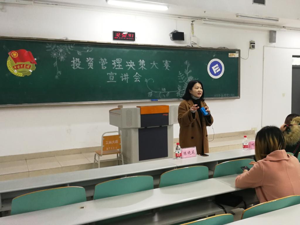 3月7日中午12:50,重庆工商大学第十七届“新儒商”老员工科技文化节之投资管理决策大赛宣讲会在博智楼07121教室举行。财政威廉希尔官网投资系陈晓莉老师以及往届优秀选手何欣悦同学出席本场宣讲会。