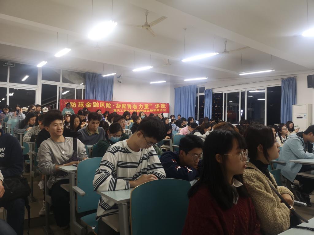 近年来,“校园贷”,“套路贷”事件频发,不少同学深受其害,因此,进行校园金融安全宣传教育必不可少。为此,重庆工商大学金融证券协会于11月12日,在重庆工商大学江北校区宏智楼B307举办了“防范金融风险,凝聚青春力量”知识讲座。