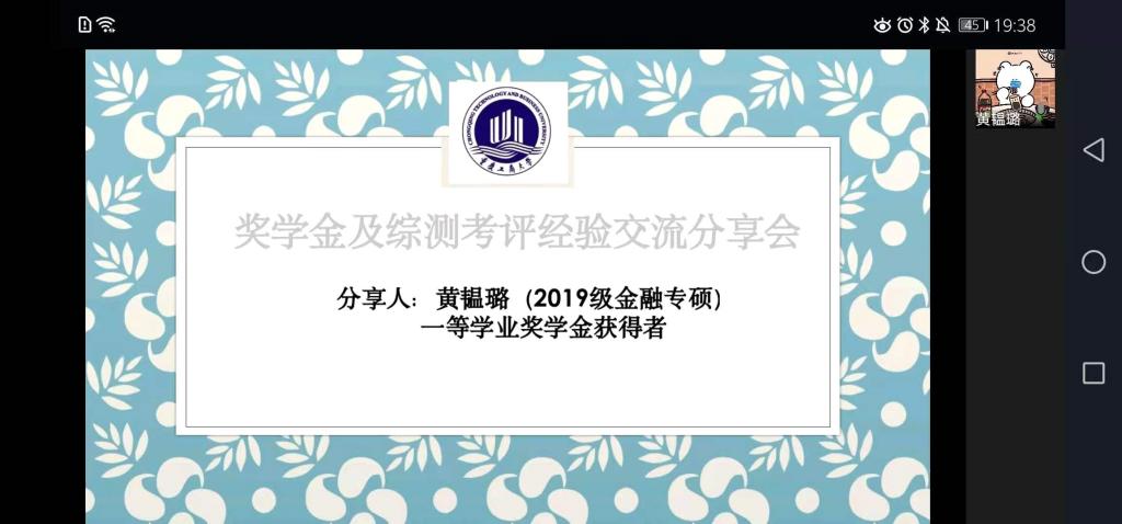 为了提升员工综合素质,增强同学积极性,树立明确的目标,确定努力的方向,帮助同学充实校园生活。威廉希尔官网研分会在2020年11月29日晚上7:00邀请到年度获取一等奖学金或者国家奖学金的高媛等五位优秀的学长学姐通过线上形式(企业微信)进行了主题为《威廉希尔官网奖学金及综测考评经验分享会》的分享会活动。2020级金融学硕、2020级金融专硕等40余人参加了此次分享会。活动由研分会的组织部人员主持。
