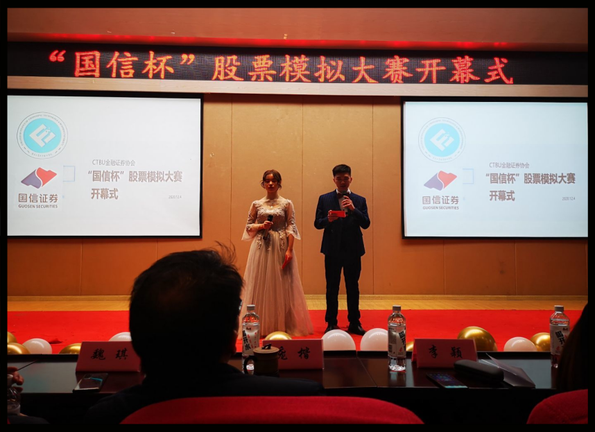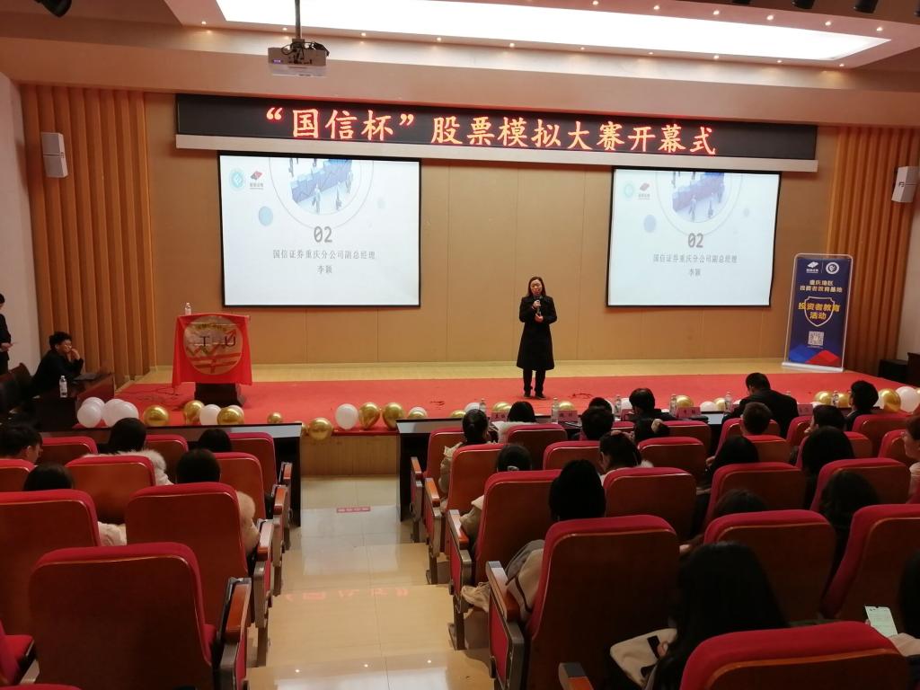 12月4日,重庆工商大学金融证券协会携手国信证券重庆分公司于田家炳书院209报告厅成功举办“国信杯”股票模拟大赛开幕式,282位来自不同专业的员工积极参加了本次活动,本次开幕式取得圆满成功。