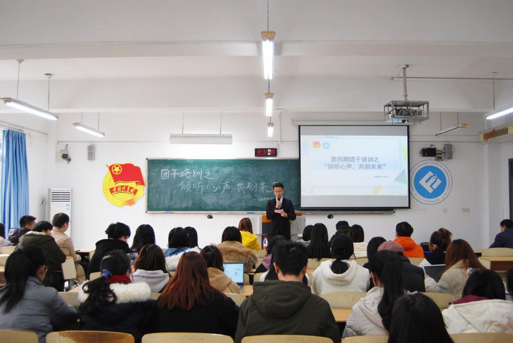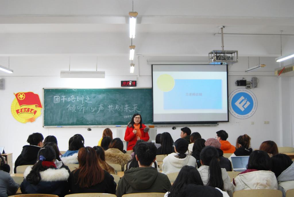 2020年12月18日中午12:50,威廉希尔官网第四期团干培训在博智楼201顺利举行,威廉希尔官网学工办副主任、分团委副书记兰丽娟老师,18、19级各班团支书及员工会成员参与了此次培训。