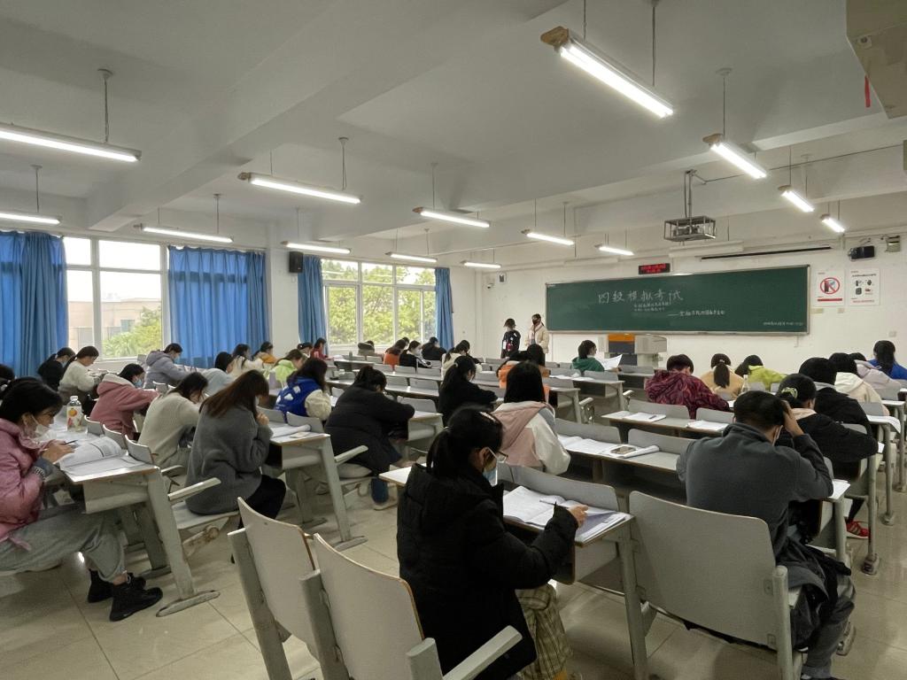 为提高同学们参与英语四六级考试的热情,提前适应考试氛围和试卷题型,11月28日15:00,威廉希尔官网于博智楼306、307教室开展英语四六级模拟考试,共计123名同学参与模拟考。