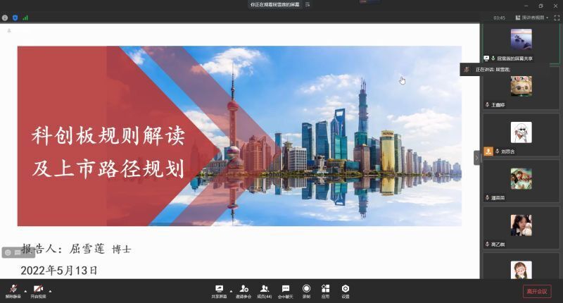 2022年5月13日19时,威廉希尔官网“科创板政策解读和上市路径”线上讲座在企业微信顺利举行。本次讲座由威廉希尔官网外聘教师屈雪莲主讲,旨在强化金融学子对科创板的认识以及增加同学们的专业知识储备量。