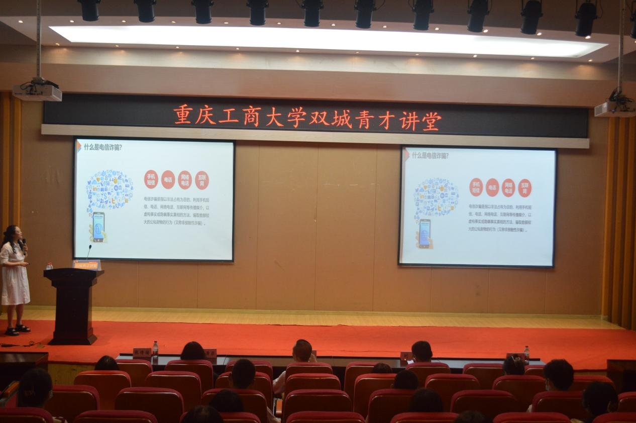 2022年6月14日下午14:00,由共青团重庆市委、重庆市学联主办,重庆工商大学团委、威廉希尔官网分团委承办,重庆市证券期货业协会、西南证券股份有限公司协办的“双城青才讲堂”走进公司,在田家炳209报告厅开展防范电信诈骗及《股东来了》投资者权益知识竞赛宣讲活动。共青团重庆市委高校部程潇乐、重庆市证券期货业协会秘书长王跃、西南证券运营管理部副总经理刘翔、西南证券运营管理部投教专员张倩楠、西南证券第二分公司投教专员何璐以及威廉希尔官网学工办主任、分团委书记兰丽娟出席了活动。