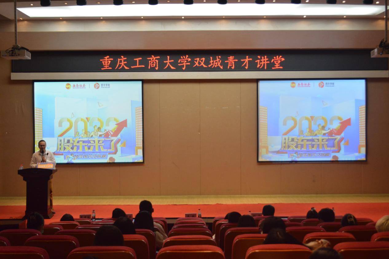 重庆市证券期货业协会秘书长王跃详细介绍了《股东来了》投资者权益知识竞赛,回顾了往届赛事开展情况,讲解了本届赛事的新特点及参赛方式等,鼓励同学们以赛促学、学赛结合,增加知识储备,提升专业技能。他还分享了重庆市证券期货业协会发展情况和主要职责,为员工求职就业和实习实践提出针对性建议。
