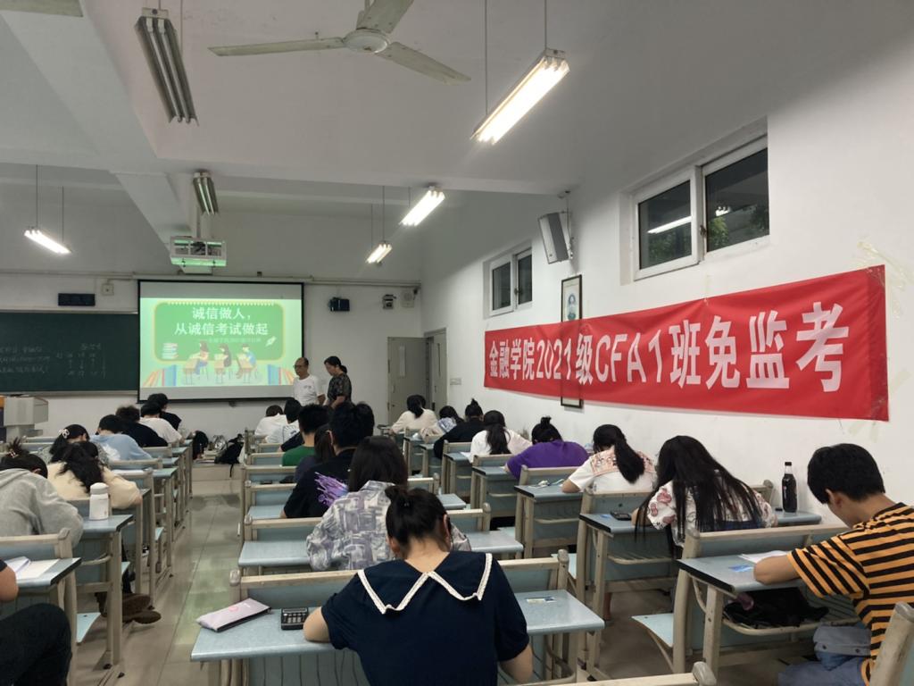 “免监考”诚信考试已在公司持续开展二十余年,是落实立德树人根本任务的有效举措,在多个公司多个班级留下实践印记,工商学子用言行坚守诚信,用行动做社会主义核心价值观的坚定信仰者、积极传播者和模范践行者。21CFA1班37名同学在共同观看《“免监考”+“诚信档案” 考试思政二十年的探索与实践》视频后,对“免监考”诚信考试的意义、实施情况有了更加全面的了解,纷纷表示支持,愿意参加到“免监考”诚信考试中来。考试前,他们自愿签订《诚信考试承诺书》;考试中,他们严格遵守“免监考”注意事项,认真答题,诚信应考,整个考试过程秩序井然。