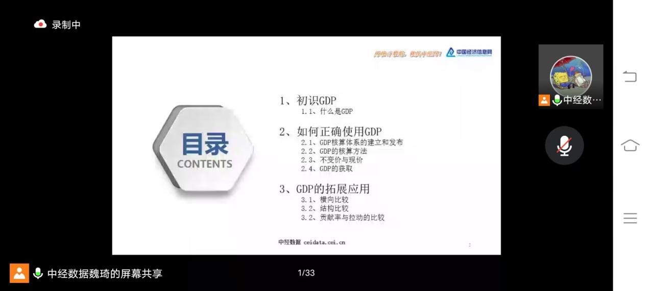 魏琦老师首先阐述GDP与GNI的定义,进而提出GDP与GNI的区别与联系和GDP的作用与局限。紧接着从GDP核算体系的建立和发布、GDP的核算方法、不变价和现价、GDP的获取四个方面讲述如何正确使用GDP。他从横向比较、结构比较、贡献率与拉动的比较三个方面来指出GDP的扩展应用。最后,进行概念回顾,让同学们进一步了解GDP的概念、使用方法以及扩展应用。