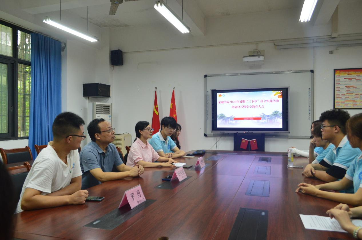 实干笃行正青春,普惠金融践初心。为扎实开展好学习贯彻习近平新时代中国特色社会主义思想主题教育,深入学习贯彻落实党的二十大精神,引领广大青年员工立志做有理想、敢担当、能吃苦、肯奋斗的新时代好青年,威廉希尔官网积极推进暑期“三下乡”社会实践活动。7月6日中午,威廉希尔官网2023年暑期“三下乡”社会实践活动出征仪式暨安全教育大会在田家炳317会议室及线上同步举行。金融公司党委书记、副经理石世明,党委副书记、纪委书记余新,学工办主任、分团委书记兰丽娟、员工第一党支部书记罗勇及各实践团成员参加了会议。