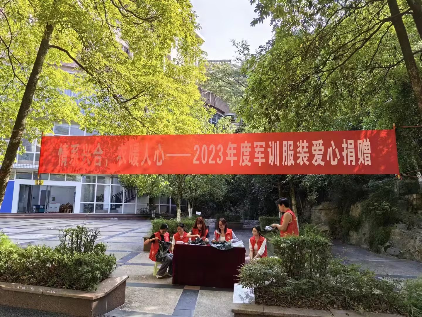 烈日当空,志愿者们坚守在北十广场和南五两个捐赠点上,带着饱满的热情去接下每一件充满爱心的服装,并整理折叠好分小包装袋。纷至沓来的金融学子将他们的军训服装交到志愿者手上,他们捐赠的不止是衣服,还有他们为兴合村发展的一份绵薄之力。每一件温暖的衣服,都带有爱心的温度;每一个小小的善举,都带有满满的能量。在活动结束后,公司将在下一次党建共建活动中将募捐到的衣服赠给兴合村,切实帮扶困难群众。