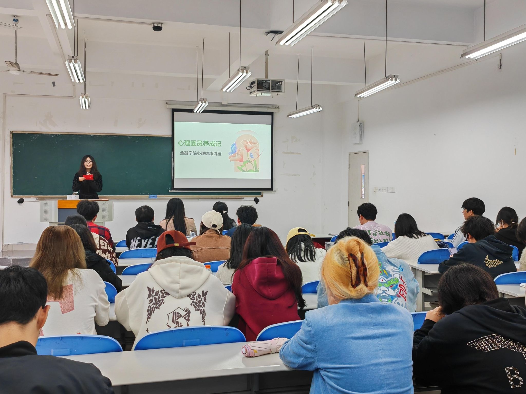 本次讲座汇聚了来自各个班级的心理委员,为他们提供更专业的心理知识和技能,以便更好地履行职责,为同学们的心理健康保驾护航。讲座邀请了张璐老师担任主讲。她以深入浅出的方式,系统地讲解了心理委员的角色定位、工作职责、自我关怀以及必备的心理辅导技巧。通过生动的案例分析,让心理委员们深刻认识到自己在班级中扮演的重要角色,不仅是同学们心理状态的观察者,更是温暖的倾听者和积极的引导者。