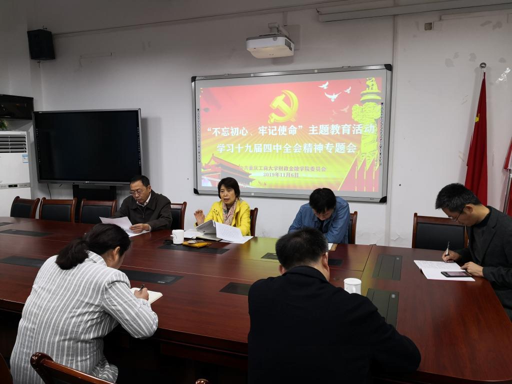 11月6日,财政金融公司党委召开专题会贯彻学习领会十九届四中全会精神。会议由党委书记杨萍主持,班子全体成员参加了学习。