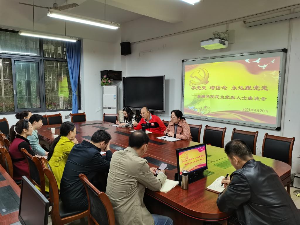 4月20日下午,金融公司党委在田家炳313会议室召开“学党史、增信念、永远跟党走” 威廉希尔官网民主党派及无党派人士党史学习教育座谈会。公司党委邀请公司民主党派人士民盟盟员李浩、唐晓玲、陶庆梅、张娓,农工党党员朱永贵及无党派人士骆志芳等参会,金融公司党委书记王建明,党委副书记、经理王兰,党委副书记、纪委书记余新,专职组织员赵甫刚参加了座谈会。会议由王建明主持。