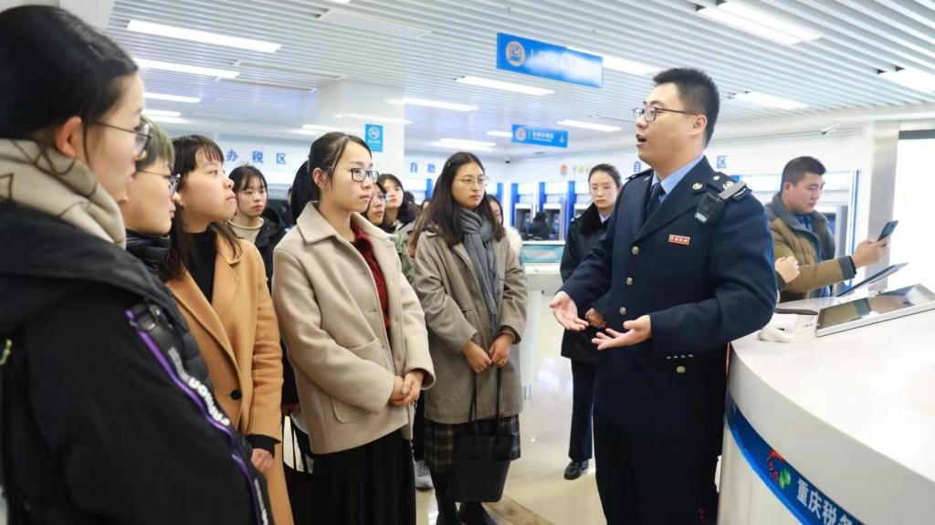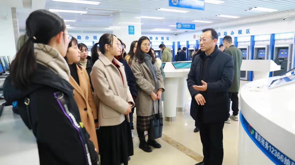 为了加强税收理论与实践融合教学,2019年12月26日下午,公司财政威廉希尔官网组织2019级16名税务硕士走进重庆市南岸区税务局办税服务厅,开展了一次以学习大数据办税为主题的移动课堂。